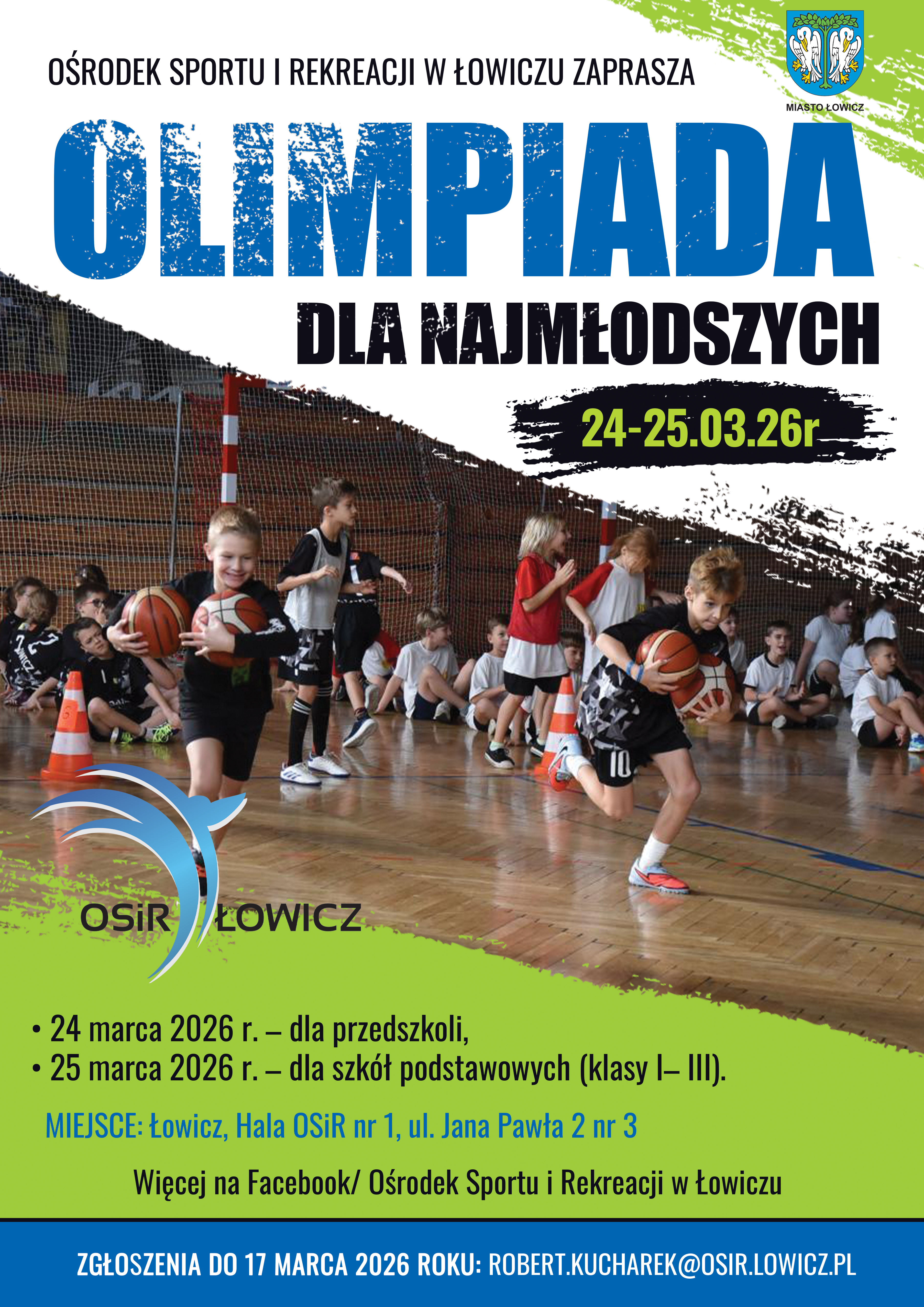 Ośrodek Sportu i Rekreacji w Łowiczu serdecznie zaprasza do udziału w drugim rzucie „Olimpiady dla Najmłodszych”, która odbędzie się: